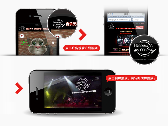 1、智能终端娱乐性能终极拓展:充分配合轩尼诗年度音乐盛典活动,通过手机视频再现颁奖盛况,体验现场音乐热情。